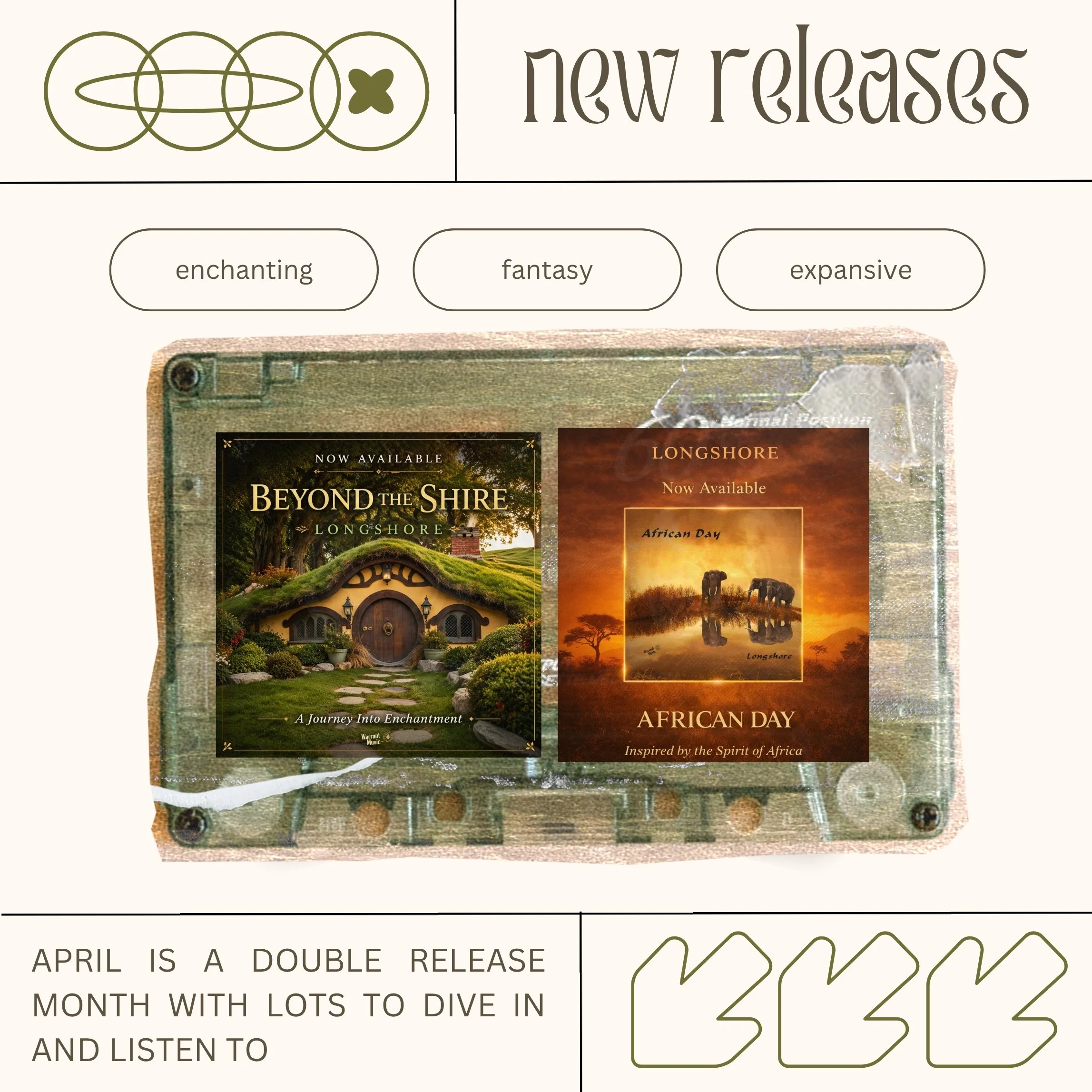 Together, these releases under the Longshore name reflect Michael Dionβs continued exploration of music as storytelling, moving between heritage and imagination, earth and fantasy. Each project invites the listener into a different world, yet both share a common thread: atmosphere, emotion, and discovery through sound.